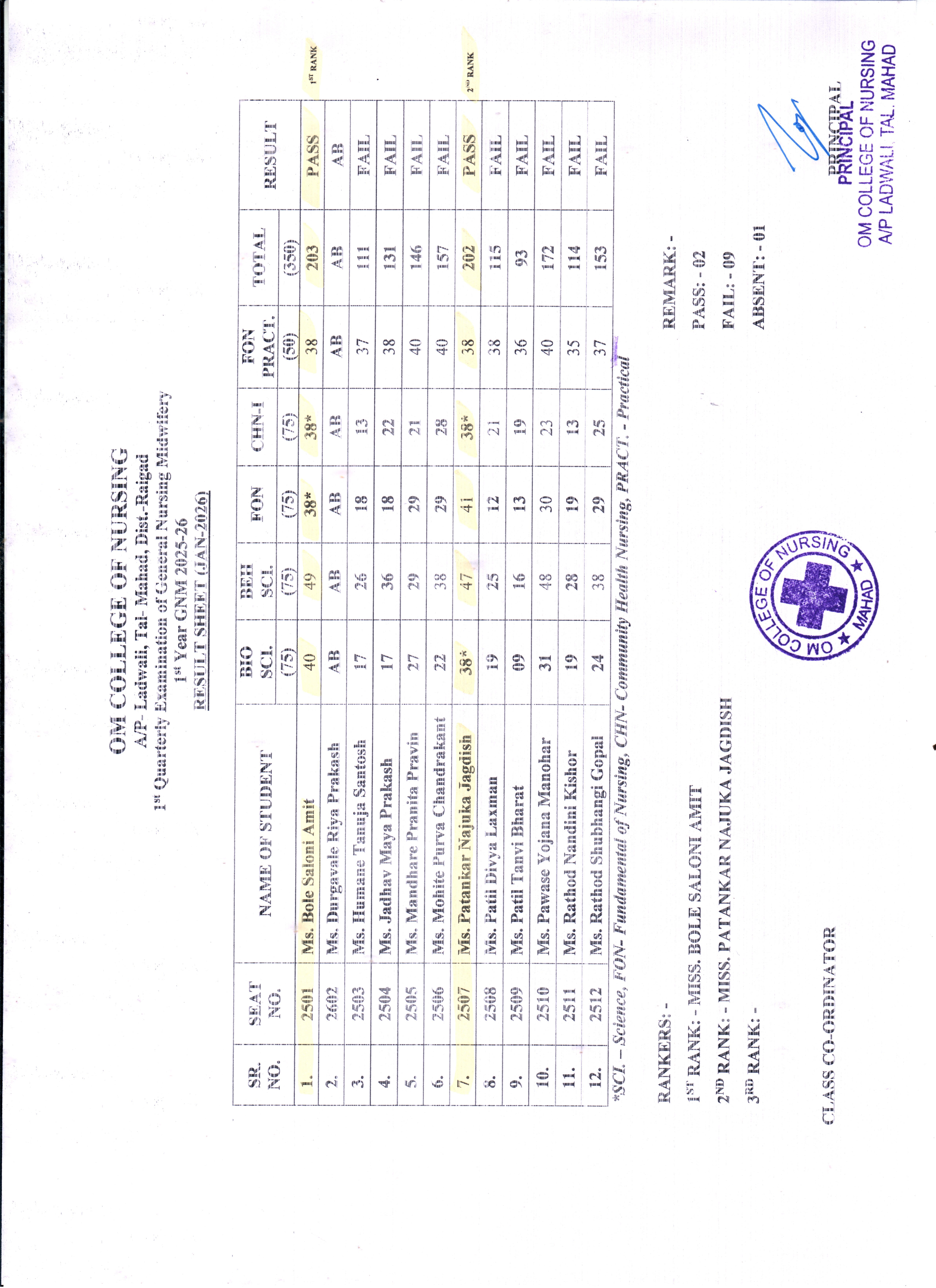 FIRST YEAR GNM RESULT (FIRST QUARTERLY EXAM JAN-2026) |